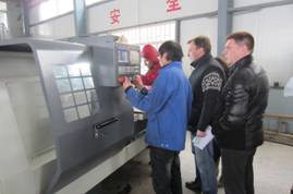 2013年2月28日,俄羅斯客商一行4人來公司驗(yàn)收春節(jié)前已訂購(gòu)的數(shù)控管螺紋車床??蜕探?jīng)過對(duì)產(chǎn)品仔細(xì)查看、開機(jī)運(yùn)行、親自操作和樣件加工等環(huán)節(jié),順利通過了驗(yàn)收。對(duì)產(chǎn)品整體情況表示滿意,并在公司進(jìn)行了編程、操作和樣件加工的技術(shù)培訓(xùn)。