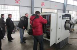2013年2月28日,俄羅斯客商一行4人來(lái)公司驗(yàn)收春節(jié)前已訂購(gòu)的數(shù)控管螺紋車床??蜕探?jīng)過(guò)對(duì)產(chǎn)品仔細(xì)查看、開(kāi)機(jī)運(yùn)行、親自操作和樣件加工等環(huán)節(jié),順利通過(guò)了驗(yàn)收。對(duì)產(chǎn)品整體情況表示滿意,并在公司進(jìn)行了編程、操作和樣件加工的技術(shù)培訓(xùn)。